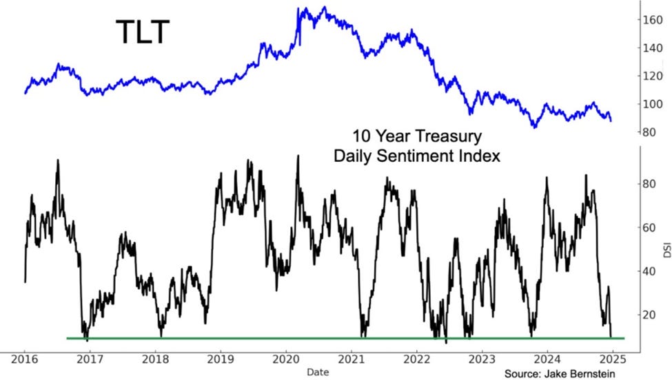 Trading bonds are just as much as knowing sentiment as it is the fundamental backdrop of where rates could go, and today, you have a sentiment on your side to be long bonds.